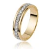 Alliance « Aulne » en or bicolore avec un ruban central en or blanc incrusté de lignes circulaires et encadré de bords en or jaune.