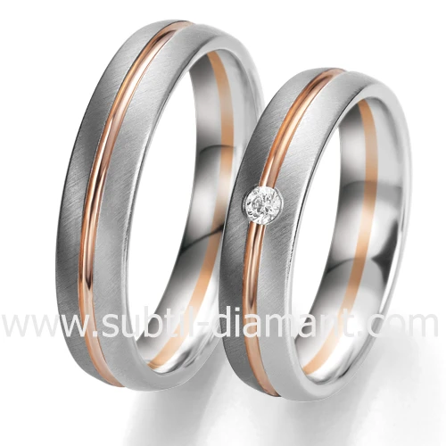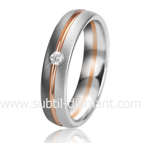 Alliance prestige en or 14 ou 18 carats. Cette alliance a une particularité d’avoir une partie en ruthenium (alliage platine)conférant à cette alliance un côté moderne avec cette couleur contrastante du noir.