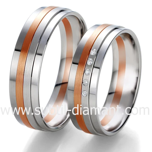 Alliance prestige en or 14 ou 18 carats. Cette alliance a une particularité d’avoir une partie en ruthenium (alliage platine)conférant à cette alliance un côté moderne avec cette couleur contrastante du noir.