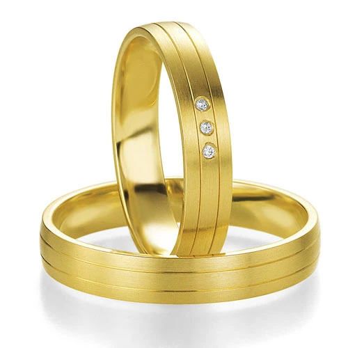 3 diamants taille brillant ornent l’alliance entre deux fils d’or poli.