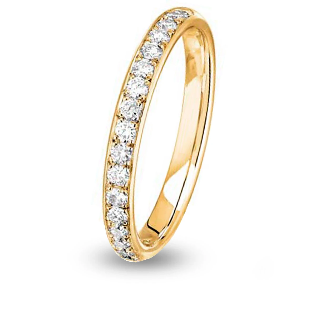 17 diamants de 0.02 ct chacun sont sertis grains sur le demi tour du corps de bague large de 2.5 mm