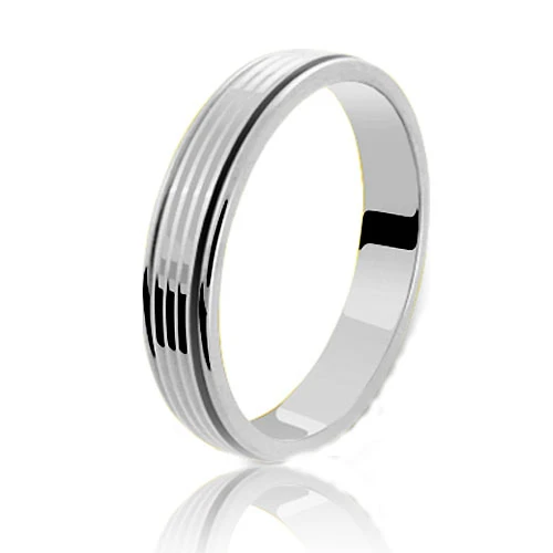 Alliance « Frene » en or blanc 18 carats, extérieur brillant et filet,et intérieur plat.