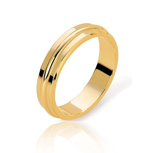 Ce modèle d’alliance est disponible en or jaune 18 carats.