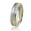Un diamant taille brillant de 0.05 carat est serti sur l’or poli au centre de l’alliance.