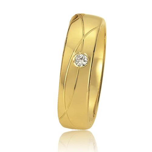 . La largeur de l’alliance est 6 mm. Le poids du diamant est 0.055 carats.