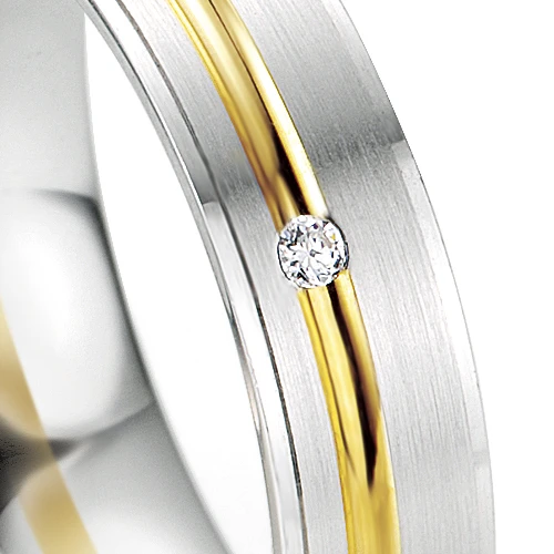 L’alliance est sertie de 1 diamant taille brillant sur l’or jaune.