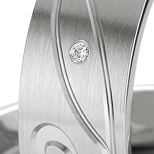 La finition de l’alliance est polie brossée. Alliance sertie de 1 diamant taille brillant d’un poids de 0.01 ct. Le diamant a une couleur « G » et une pureté « VS1 ». L’épaisseur de l’alliance est de 1.3 mm.