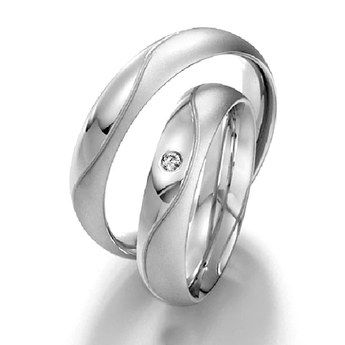 . La largeur de l’alliance est 5 mm. Le poids du diamant est 0.03 carats.