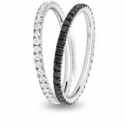La marque Verifine vous propose cette magnifique triple alliance en or blanc de 18 carats sertie de diamants blancs et noirs.