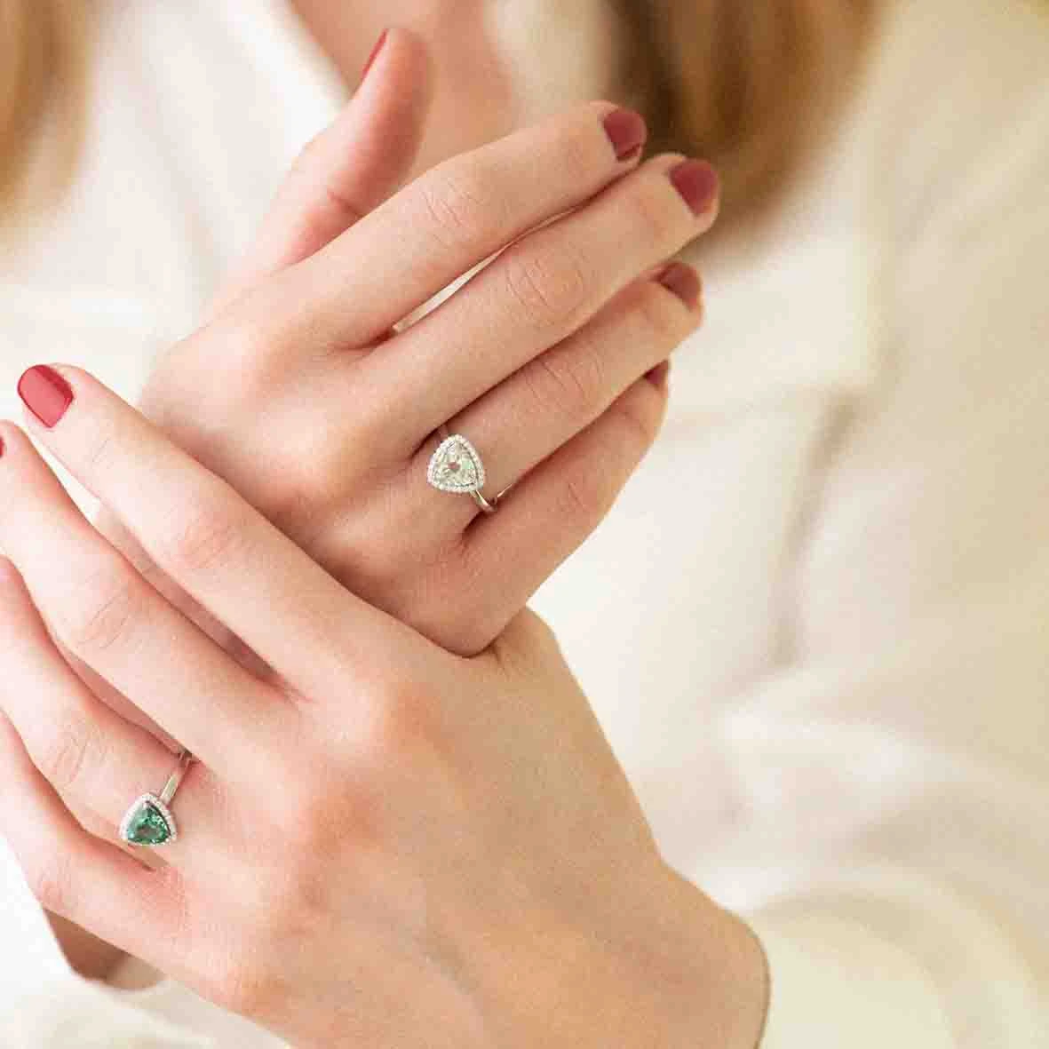 La couleur des diamants est G (extra blanc). La pureté des diamants est VS (aucune inclusion visible a l’oeil nu).