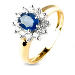 Bague Saphir 1 Carat Sertie De Diamants 0.48 Ct En Or Jaune Diamant Leïla -8943-SA