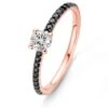Le diamant de centre d’un poid de 0.10 ct est serti par un châton 4 griffes. Le corps de bague est serti de deux rangĂ©es de diamants qui donne de l’Ă©clat et de la brillance Ă ce modèle. Le poids total des 47 diamants est de 0.31 ct.