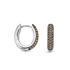 Les boucles d’oreilles sont serties de diamants bruns.