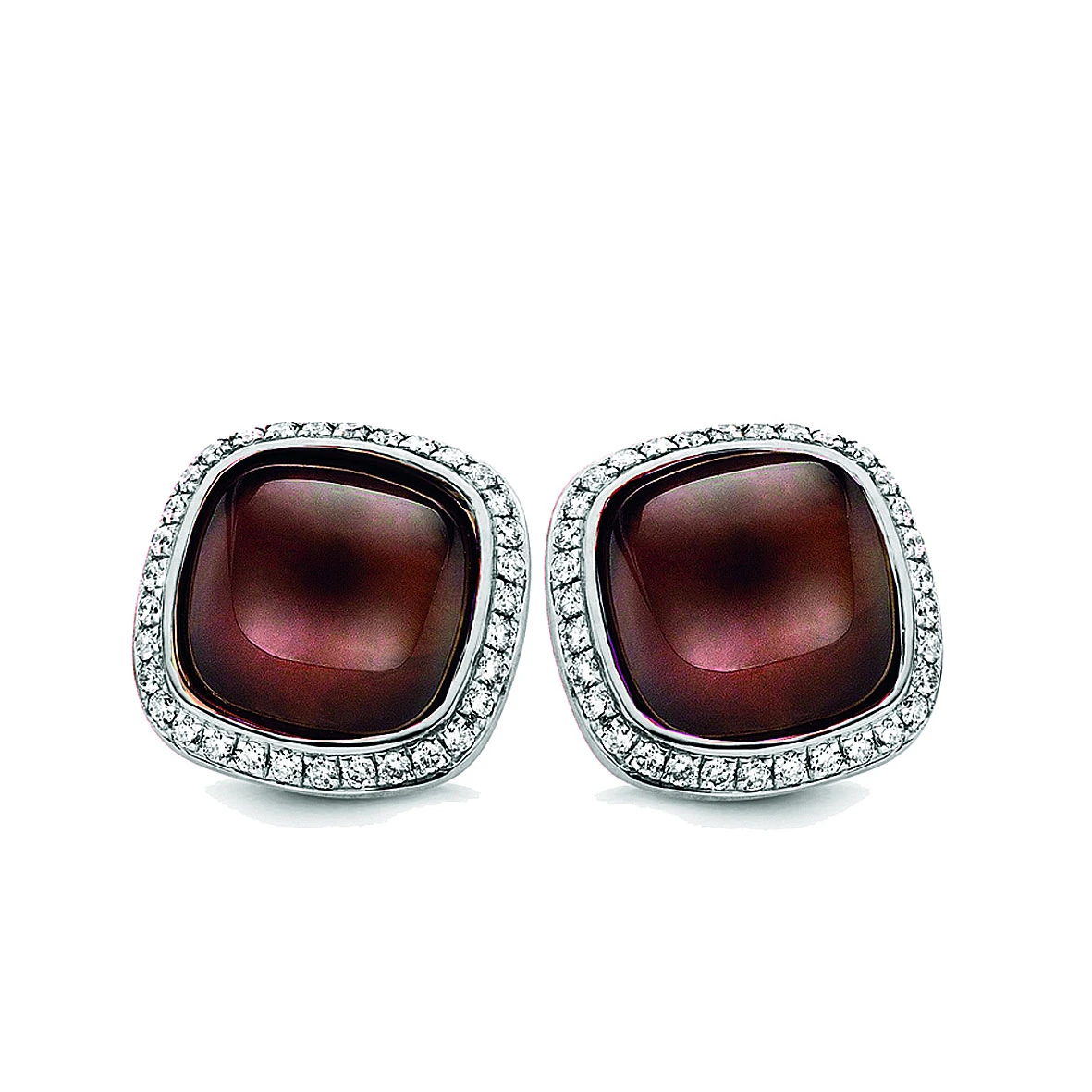 Boucles Amiata, quartz fumé sur nacre et diamants sur or blanc 750/1000