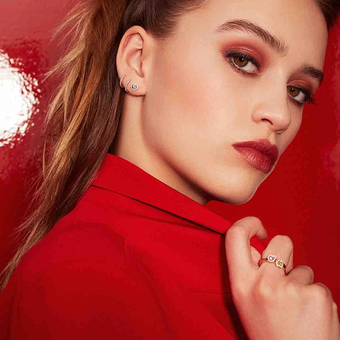 L’entourage des boucles d’oreilles est pavé de diamants Le système de fermeture est un système poussette belge.