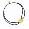 En or jaune 18 carats, la médaille est nouée sur un cordon en coton noir, ajustable à la taille de votre poignet.