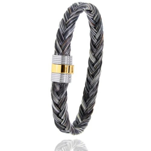 Bracelet Albanu en crin de cheval, avec un fermoir en acier inoxydable et or jaune.