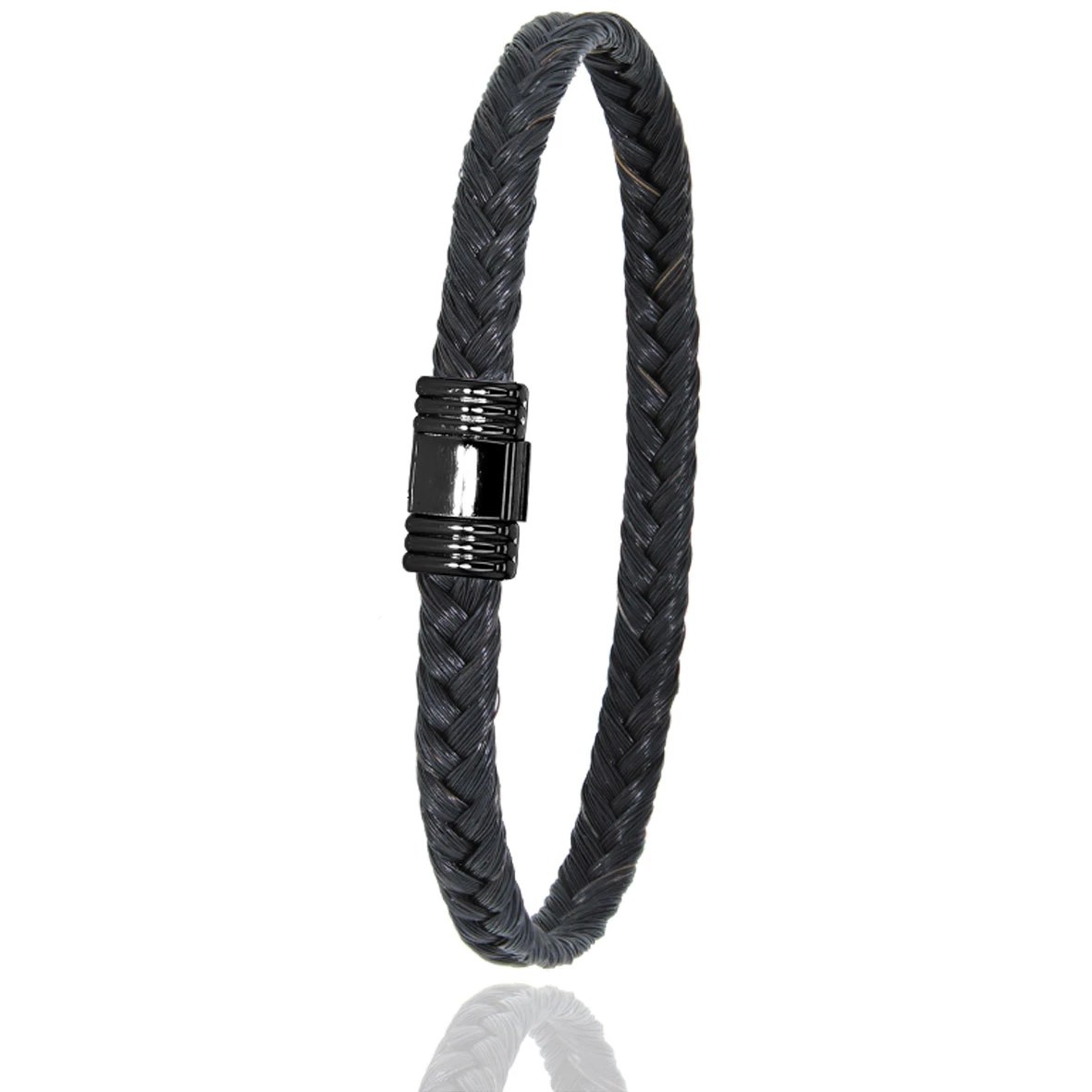 Bracelet Albanu en crin de cheval, avec un fermoir en acier inoxydable avec un revêtement PVD noir.