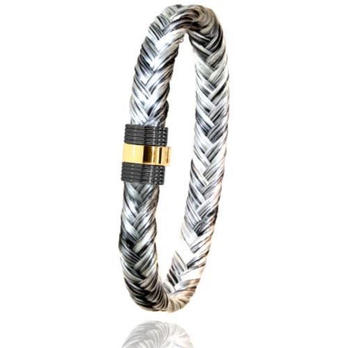 Bracelet Albanu en crin de cheval, avec un fermoir en acier avec PVD noir et or jaune.