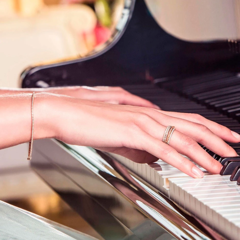 Bracelet prestige en or rose, orné de 129 diamants blancs.