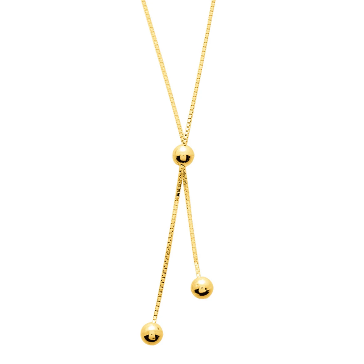 Le collier se compose d’une chaîne maille vénitienne au bout de laquelle pend trois boules en or .