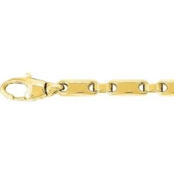 Un style contemporain et très tendance, la fantaisie de la chaîne réside alors dans la forme des mailles, qui ont des motifs bombés ou torsadés ou autres.