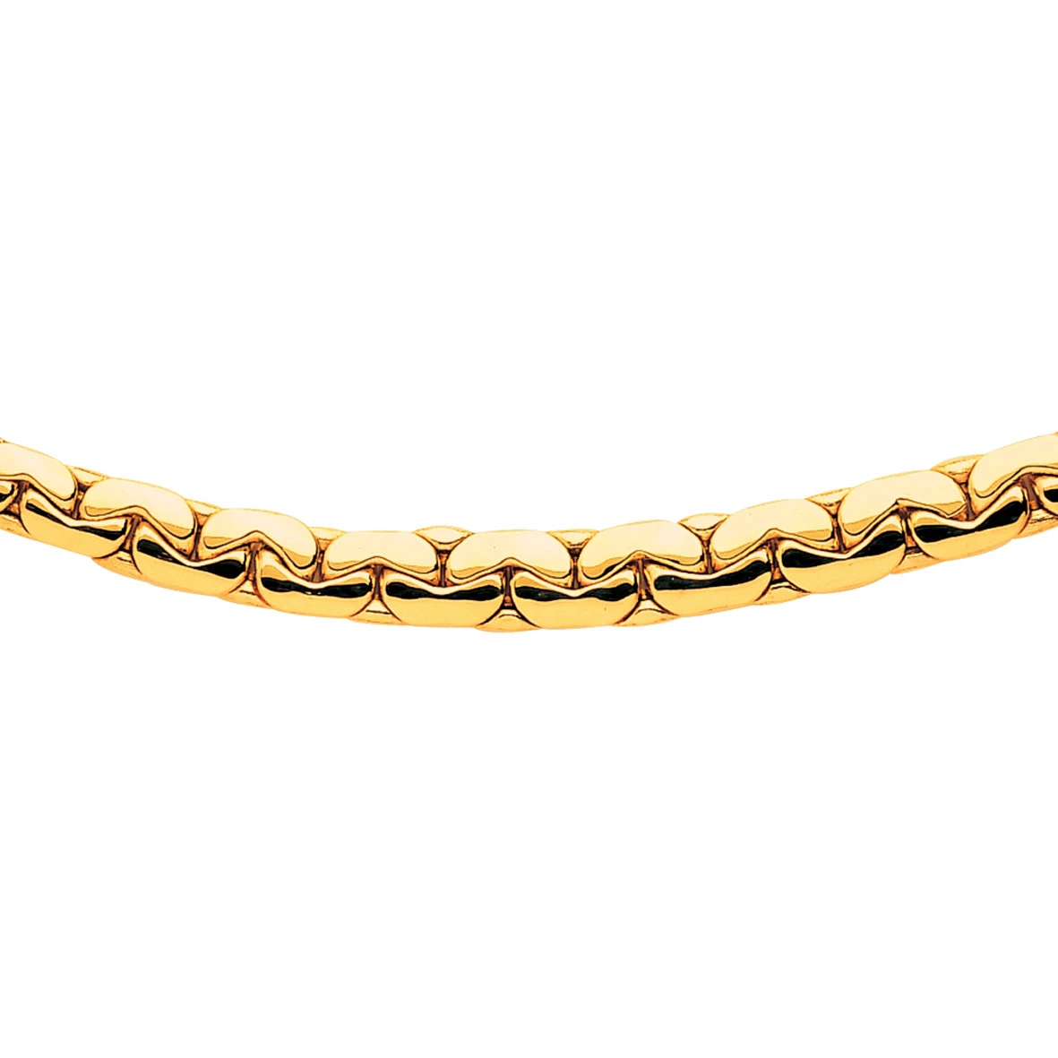 Cette chaîne maille haricot est en or jaune 18 carats.
