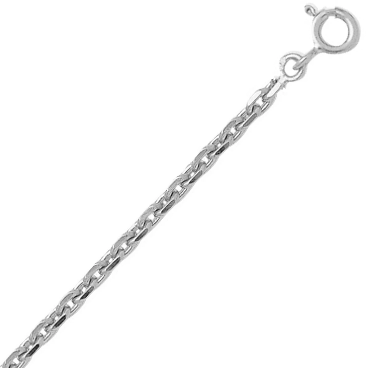 Cette chaîne est en or blanc de 18 carats avec une maille forçat.