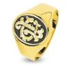 Ce modèle de chevalière dont le dessus s’élargit avec un plateau de forme tonneau sur lequel on peut graver des armoiries ou des initiales.