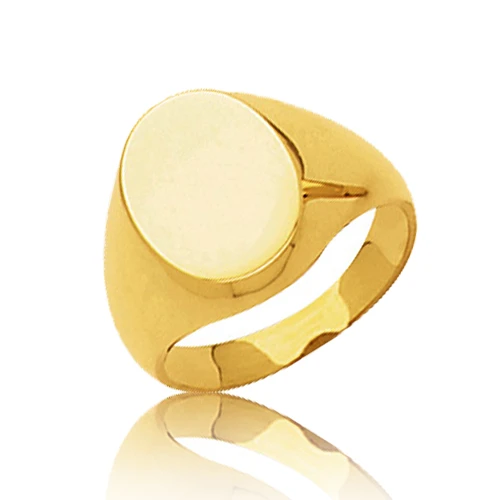 Ce modèle de chevalière dont le dessus s’élargit avec un plateau de forme ovale sur lequel on peut graver des armoiries ou des initiales.