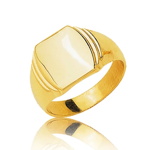 Ce modèle de chevalière dont le dessus s’élargit avec un plateau de forme rectangulaire légèrement arrondie avec deux striures de chaque côté du plateau.