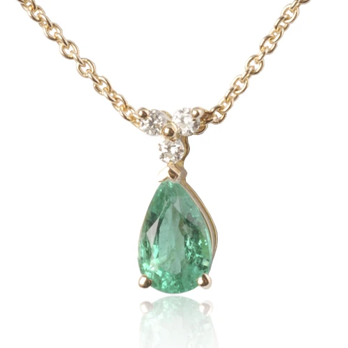 Collier Ă©meraude Poire 0.80 Ct Serti De 3 Diamants 0.06 Ct Lisa – CL4317-EM0.80