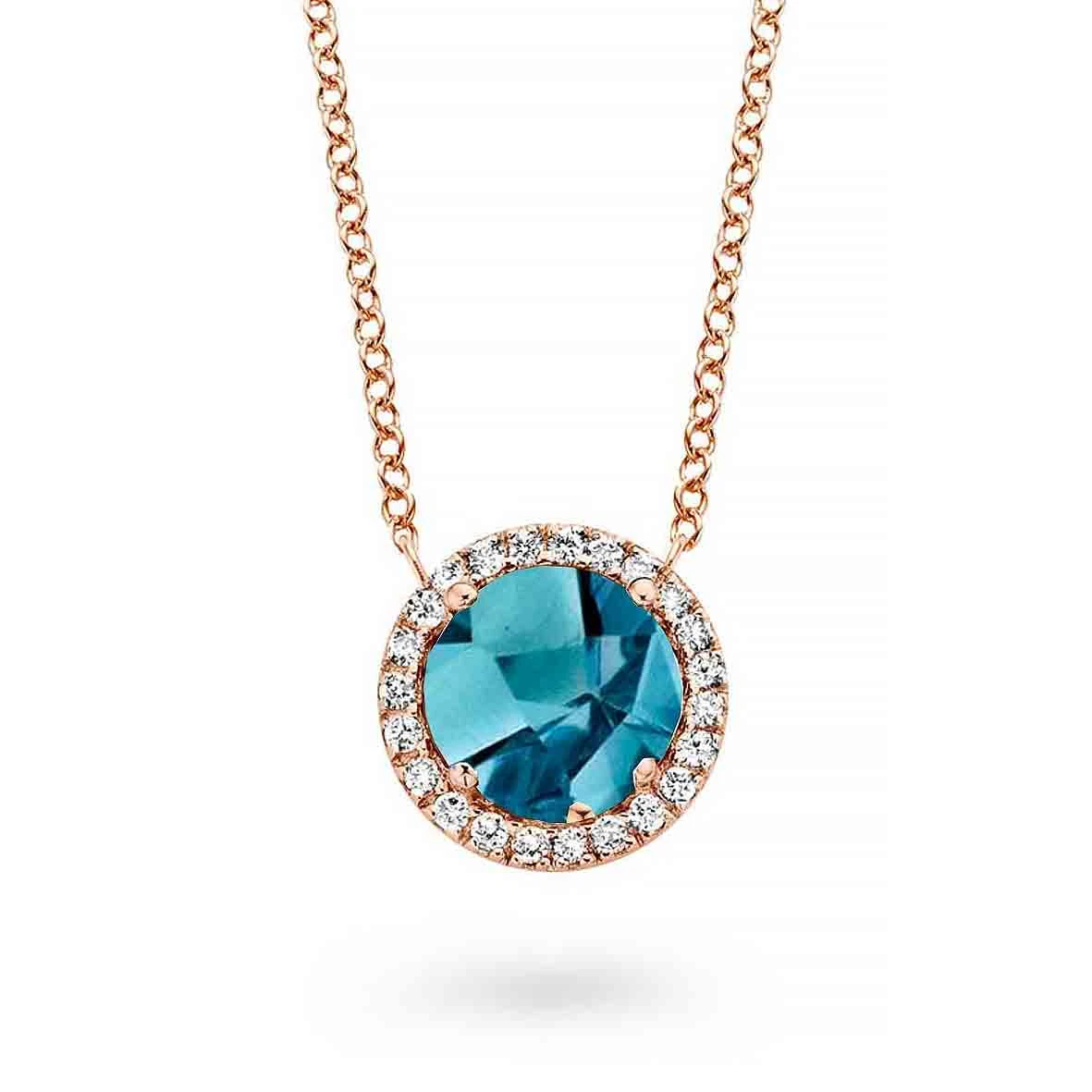 Collier Etna, topaze London Blue et diamants sur or rose 750/1000
