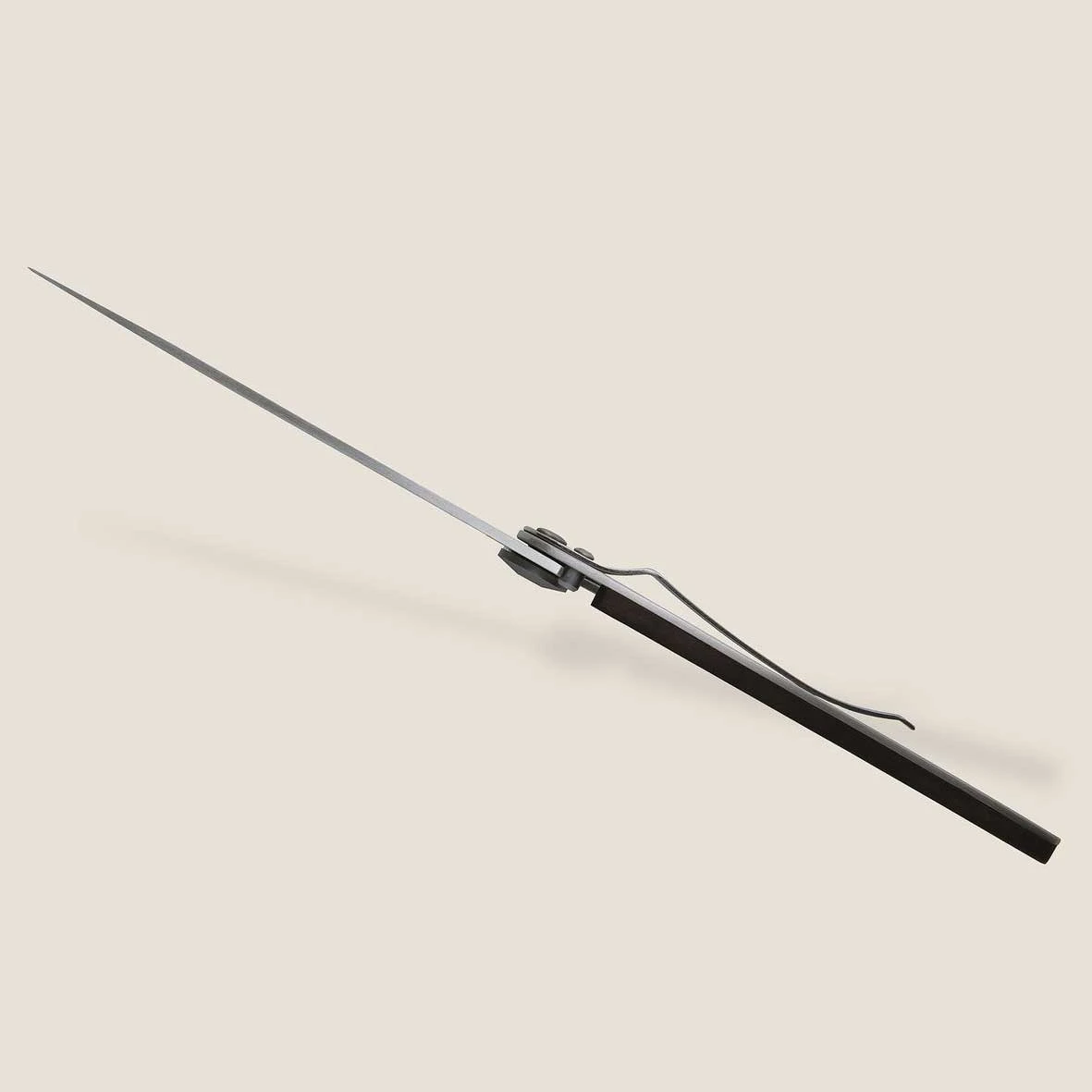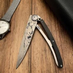 Le bois d’ébène qui orne le manche de ce couteau Deejo est une véritable ode aux noirs profonds.