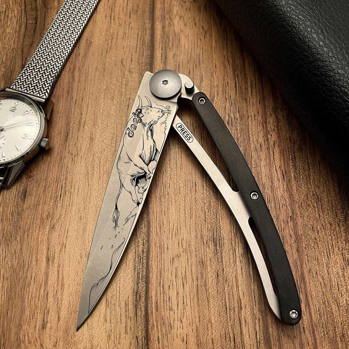 Mais ce n’est pas tout : facile à porter, à utiliser, à adopter, Deejo va au-delà du couteau en s’offrant la possibilité d’être « tatoué » : tatouer son couteau, comme l’on marquerait sa peau, c’est offrir à cet objet déjà très personnel, une tout autre dimension : son identité.