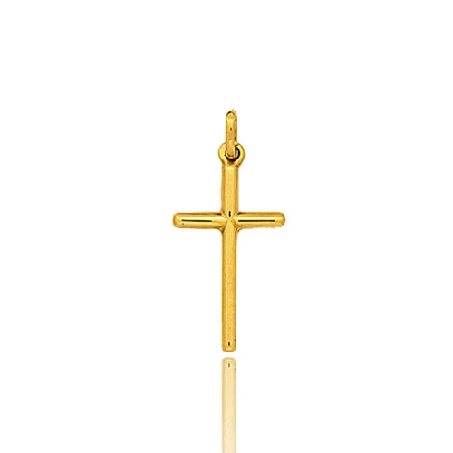 Cette croix bâton arrondie en or jaune 18 carats poli brillant se porte en toute simplicité.