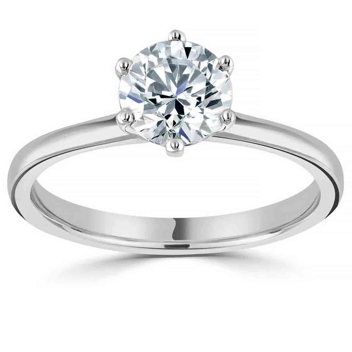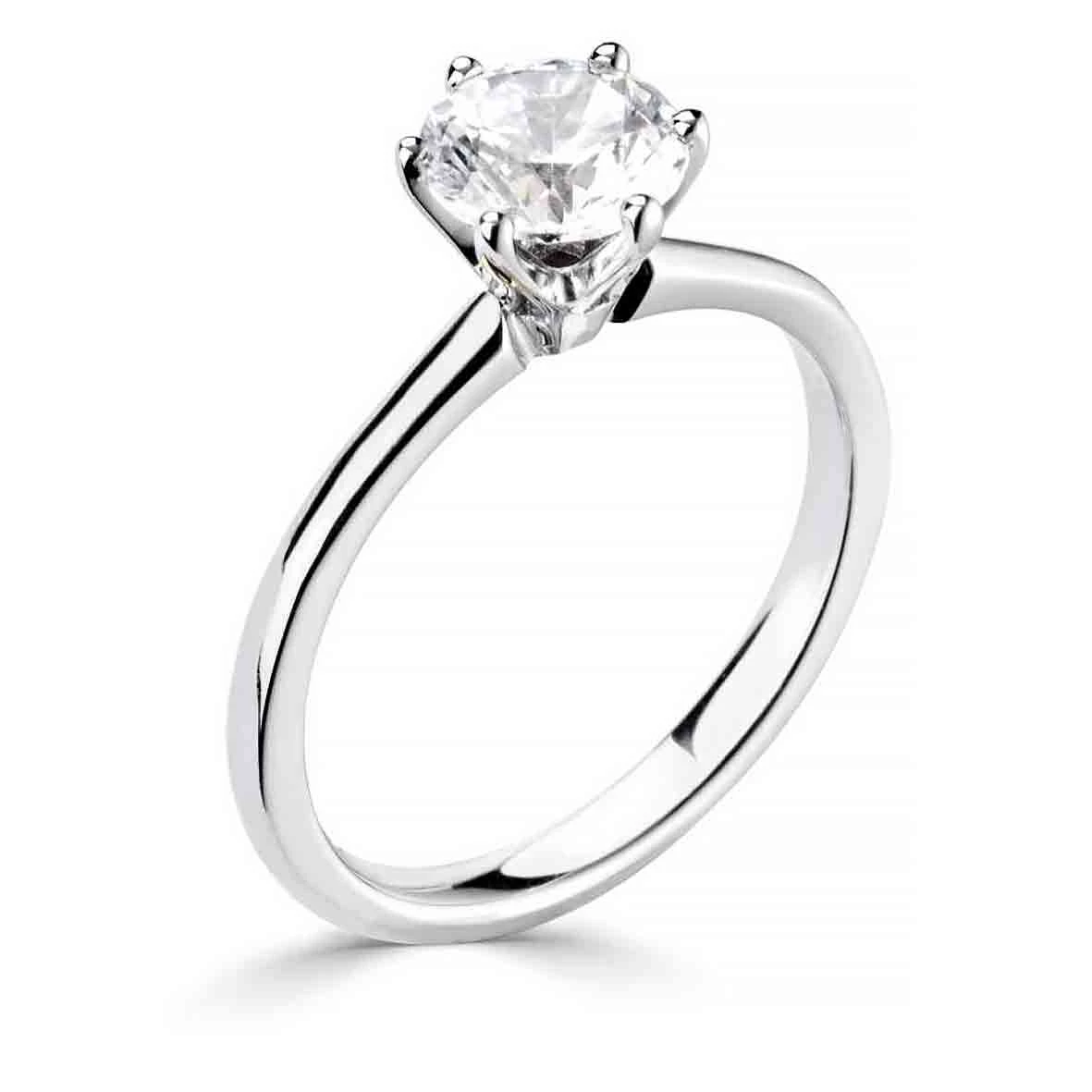 Bague de fiançailles solitaire diamant en or blanc de 18 carats.