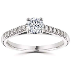 12 diamants sont sertis par des griffes remontant vers le châton de la bague.