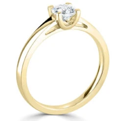 La bague a un corps de bague rectangulaire; le chaton 4 griffes est moderne avec sa forme en V permettant de voir la culasse de diamant.
