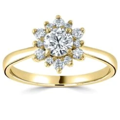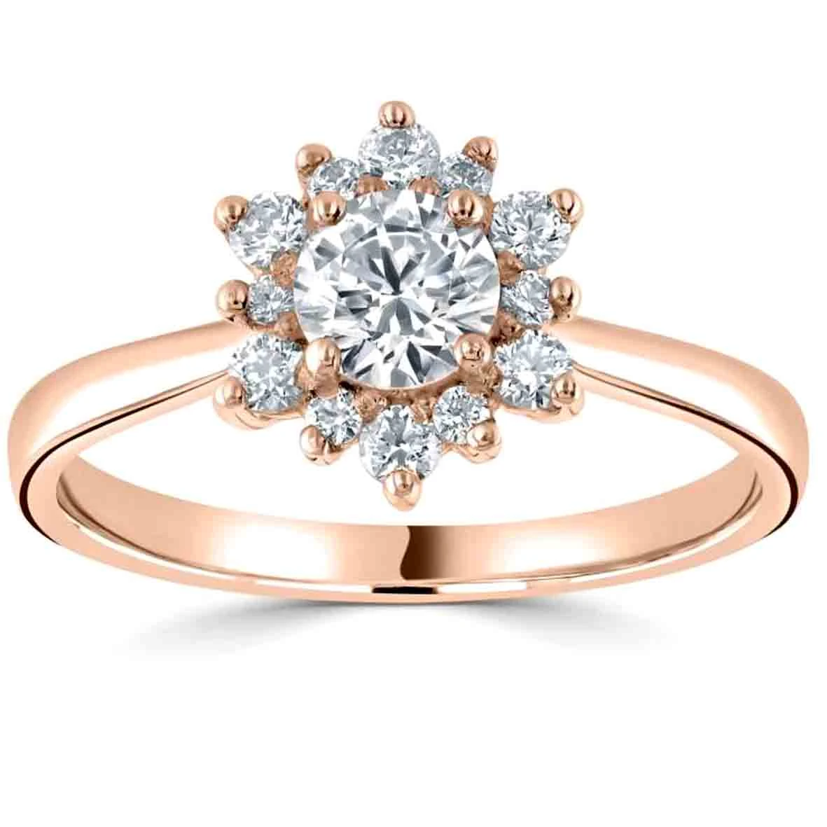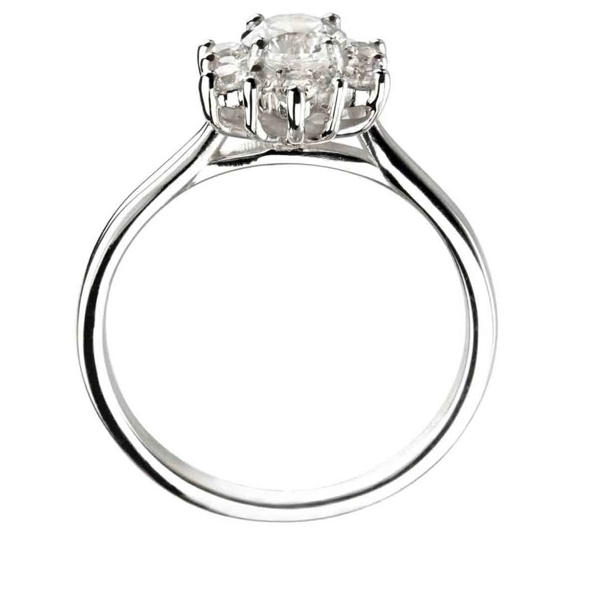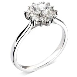 Le diamant de centre est entouré de diamants de façon très graphique