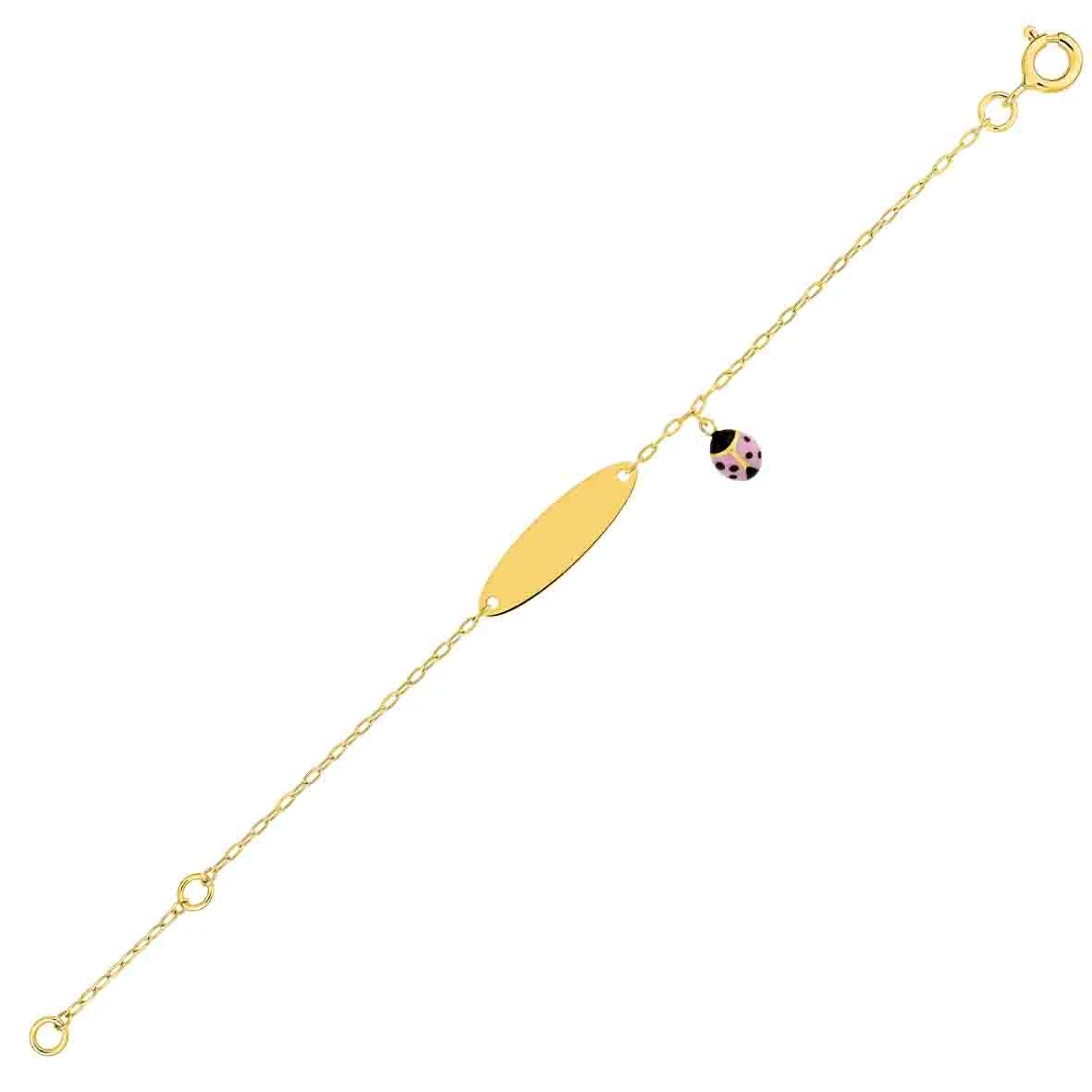 Offrez à votre bébé un bijou d’exception avec cette gourmette bébé en or jaune 18 carats personnalisable avec sa plaque en forme tonneau et son charm papillon.
