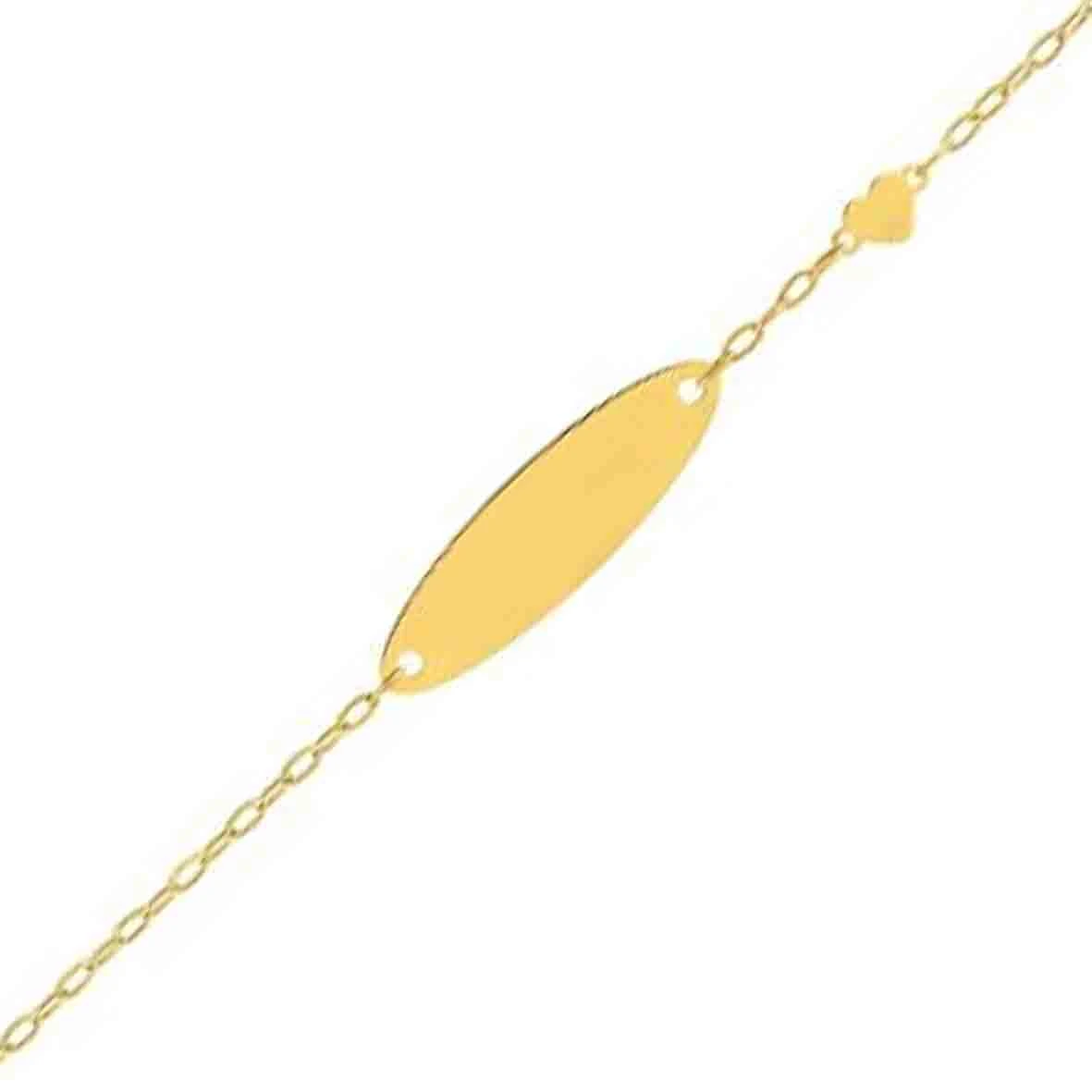 Offrez à votre bébé un bijou inoubliable avec cette gourmette bébé en or jaune 18 carats personnalisable avec sa plaque en forme de tonneau et son charm cœur.