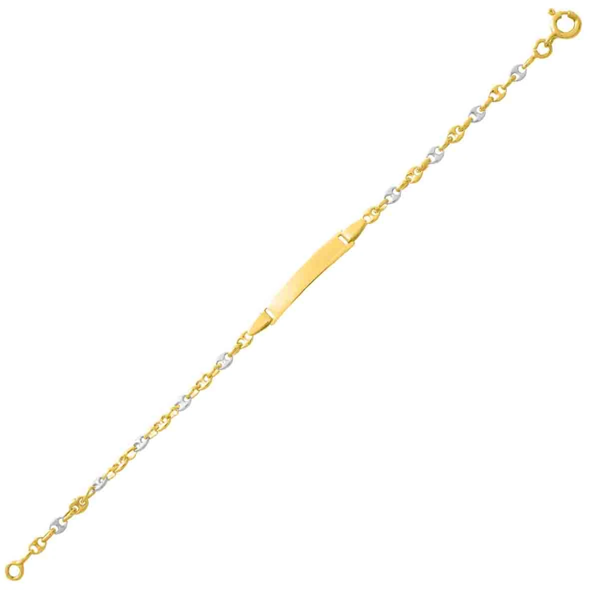 Commandez dès maintenant cette gourmette identité bébé en or jaune et blanc 18 carats et profitez de la livraison rapide et gratuite.