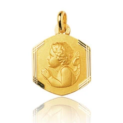 Vous pouvez choisir une chaîne en or jaune de 18 carats, de 40cm de long et 3mm de large.