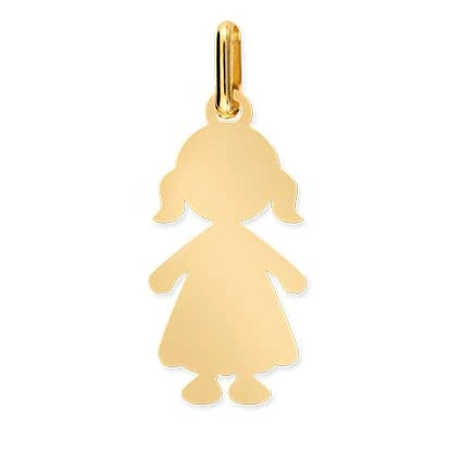 Pendentif représentant un jeune fille portant des couettes et une robe.