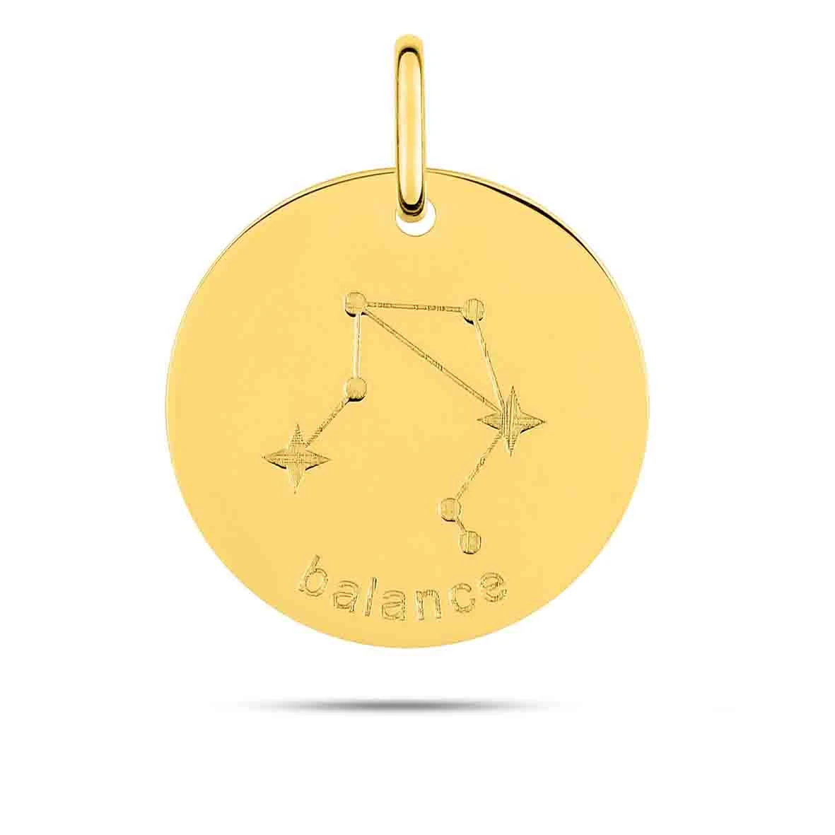 Médaille Pendentif Zodiaque Balance Or Jaune Emma