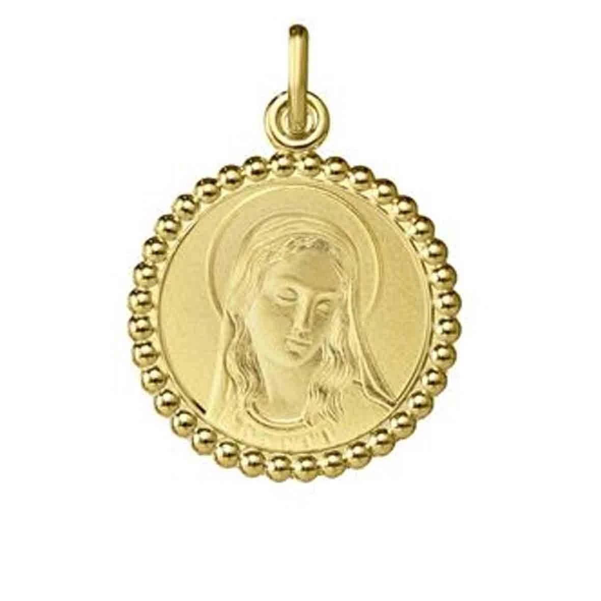 Médaille jeune Vièrge en or jaune 18k. Diamètre de 20mm