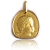 Confectionnée en or jaune 18 carats, cette médaille de forme ronde arbore une très belle finition polie sablée.