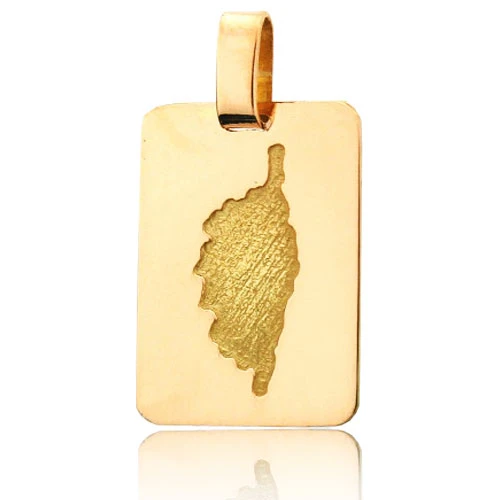 Pendentif de forme rectangulaire qui a en son centre la carte de la Corse avec une finition brossée.