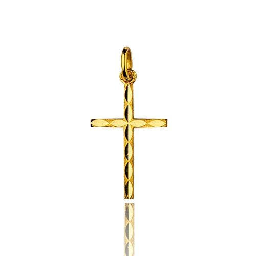 Cette croix chrétienne est en or jaune 9 ou 18 carats.